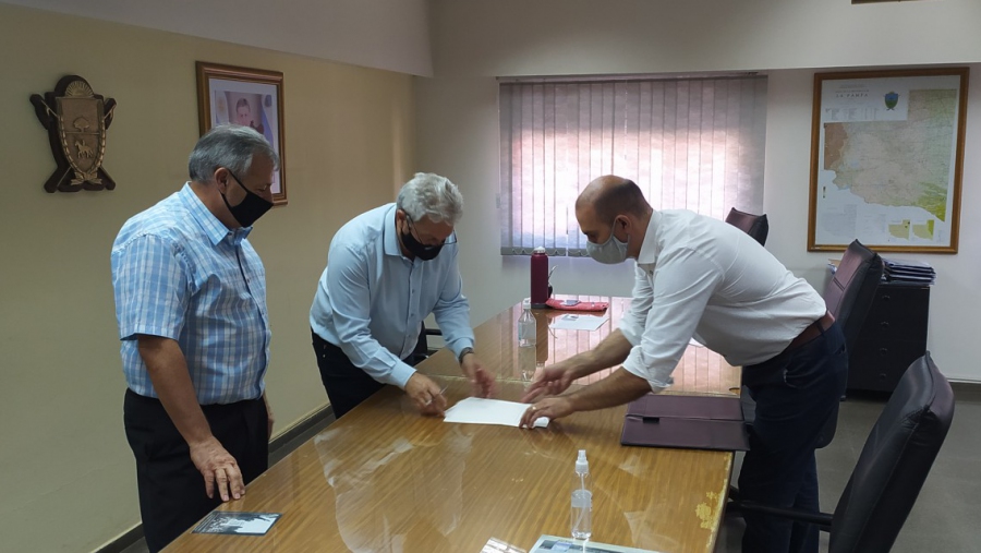 En la mañana de este lunesel presidente del IPAV, Jorge Lezcano, firmó ante el escribano General de Gobierno, la afectación al reglamento de propiedad horizontal de seis locales comerciales ubicados en el Barrio FONAVI II y III de la ciudad de General Acha.