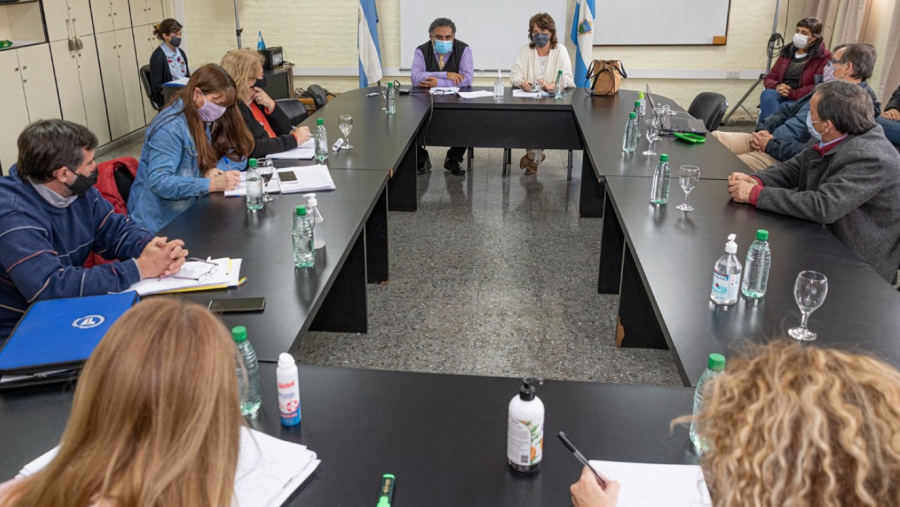 El encuentro contó con la presencia de la subsecretaría de Educación, Marcela Feuerschvenger, el subsecretario de Salud, Gustavo Vera, integrantes del área provincial de Epidemiología y referentes de los gremios que nuclean a trabajadores y trabajadoras de la Educación.