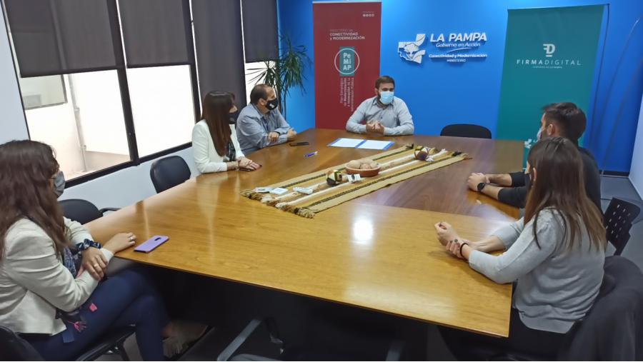 Participaron de la firma, además del ministro, la subsecretaría de Modernización del Ministerio de Conectividad y Modernización, Carmen Sierra; y el presidente del Colegio de Arquitectos de La Pampa, Guillermo Blanco.